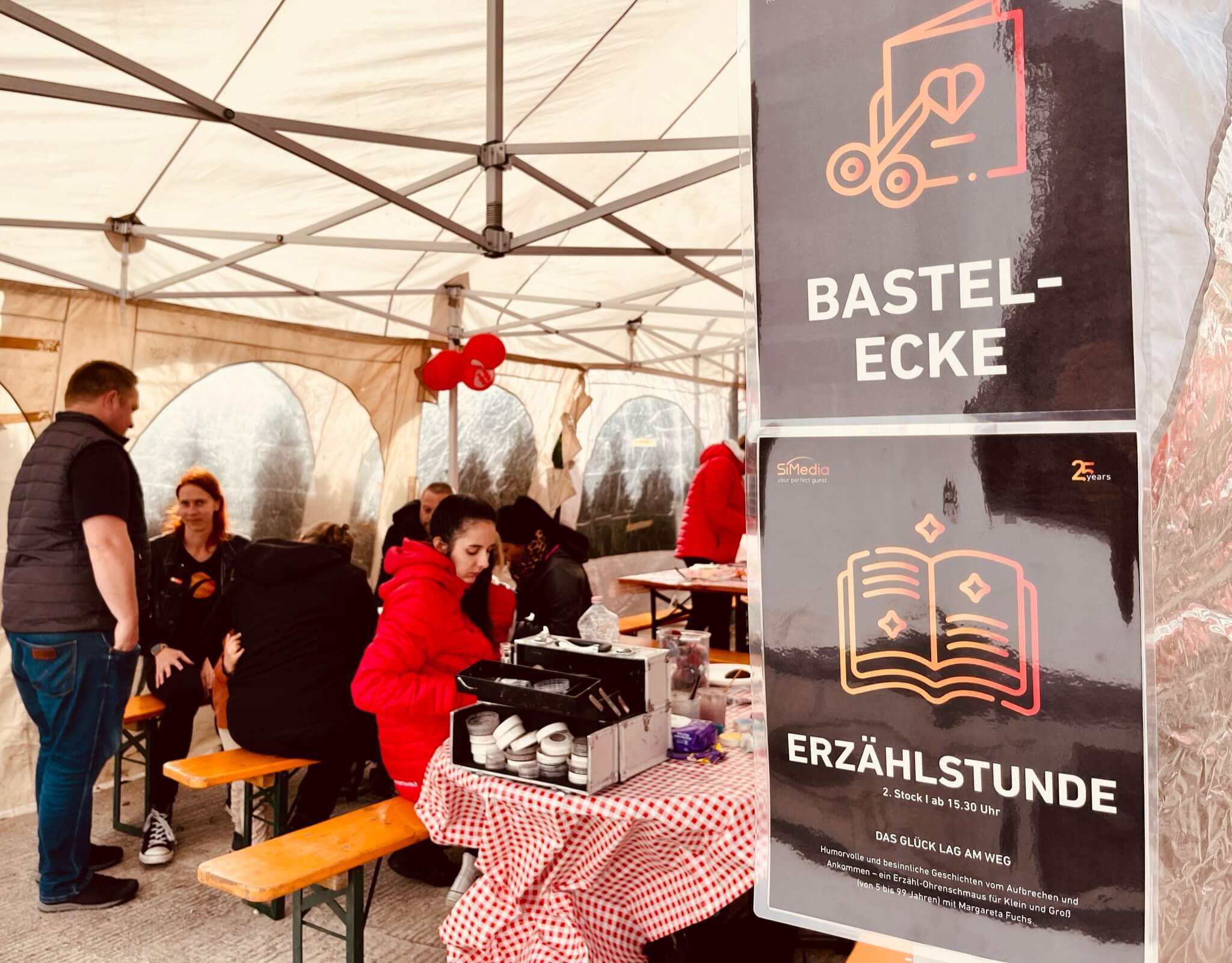 Das Nachmittagsprogramm beim SiMedia Jubiläumstag stand ganz im Zeichen von Spiel, Spaß und Genuss. Über 200 kleine und große Besucher*innen haben die offenen Türen genützt, um mit dem SiMedia Team den Tag zu feiern. Von der Kreativ-Bastel-, Mal- und Schminkecke (Kinderfreunde Südtirol) über die zauberhafte Märchenstunde (Margareta Fuchs) und Street Comedy mit Clownin Malona bis hin zum Virtual Reality Corner bot das Programm viele Highlights. Die „Niederdorfer Böhmische“ und der Singer-Songwriter Manuel R. begleiteten den Nachmittag mit Live-Musik.